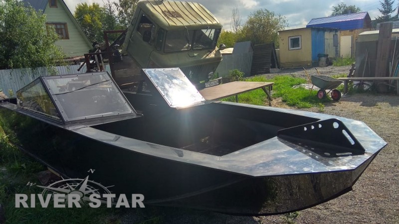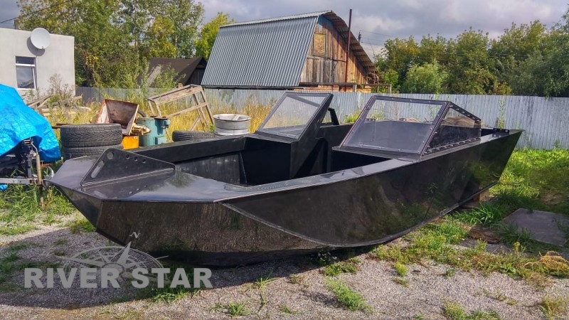 Катер из ПНД с водометом, спроектированный и построенный в двух экземплярах, по техническому заданию заказчика, для эксплуатации на горных реках, преимущественно на реке Кокса.